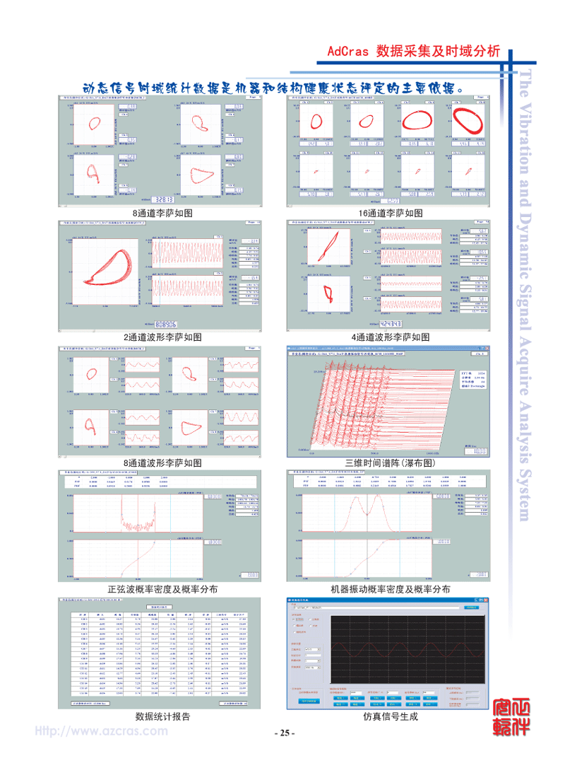 通过PC及数据采集箱的USB 串行接口、并行接口或各种数据总线以及信号调理仪组成CRAS 数据采集系统,这是 CRAS 各种软件运行的基本平台,其上配置AdCras 软件可以作为振动、应变、噪声、压力、流量、温度等信号的实时多通道记忆示波器、大容量数据采集记录仪、稳态或瞬间事件波形分析仪、时域统计计算及波形平滑、滤波、积分微分等处理器。由此组成各种用途的虚拟仪器。CRAS 标准的数据采集系统配置为: