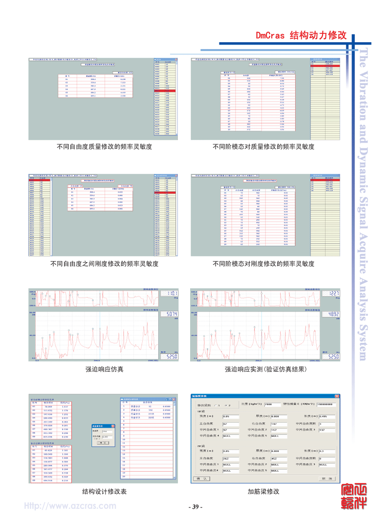 一个新产品设计制造出来后经过模态试验其动力特性如不能符合设计要求,如何对此设计进行修改?DmCras为此指出了路径。它是优化动力设计的有效工具。所谓结构动力修改有两个含义:1、如果机器作了某种设计上的修改,它的动力学特性将会有何种变化?这个问题被称为SDM的正问题。2、如果要求结构动力学参数作某种改变,应该对设计作何种修改?这是 SDM 的反问题。与结构动力修改联系在一起的还有动力灵敏度分析和强迫响应估计。