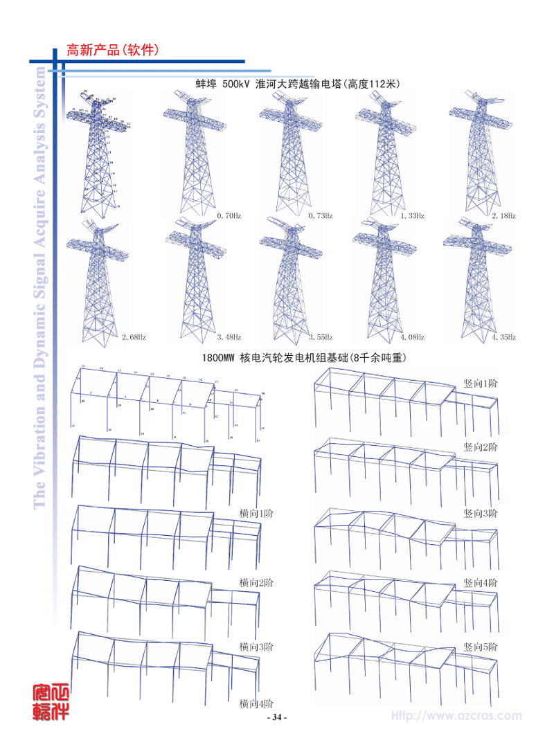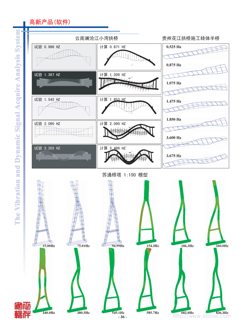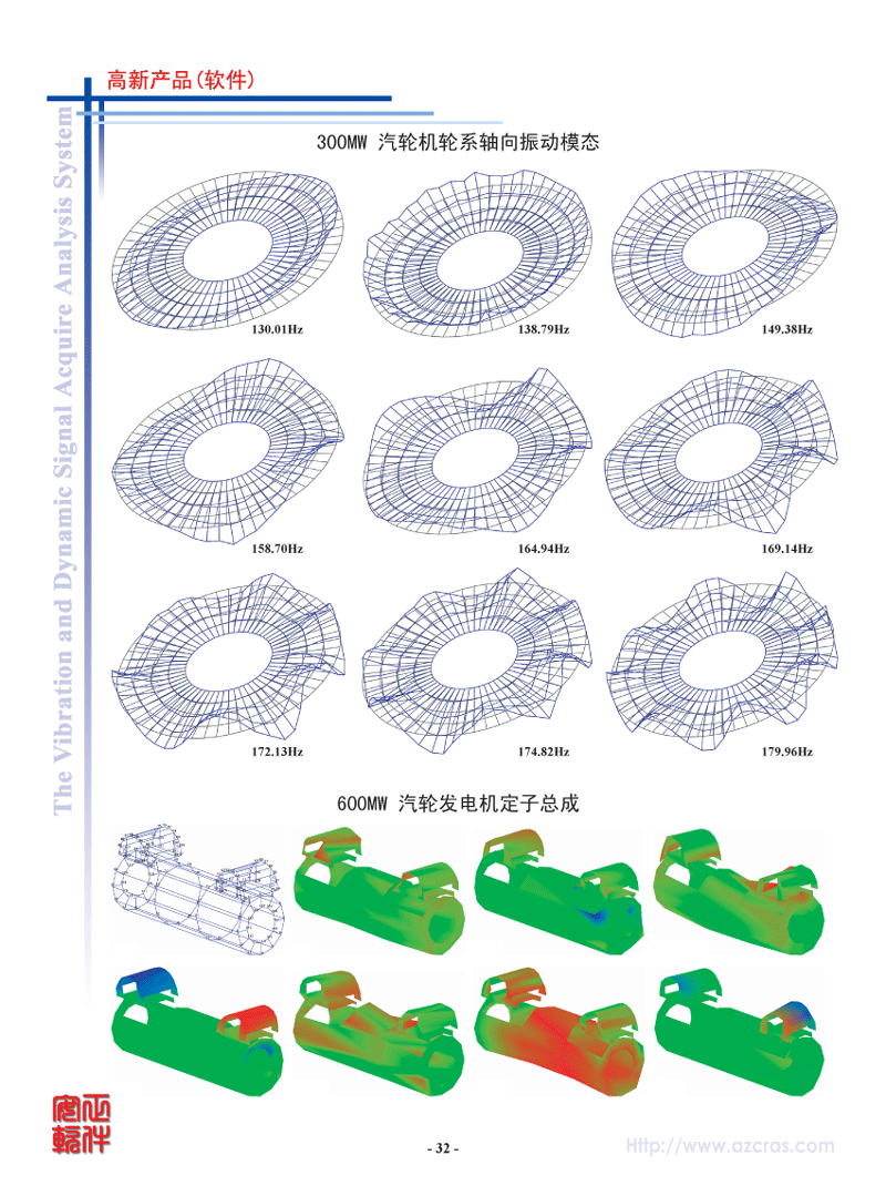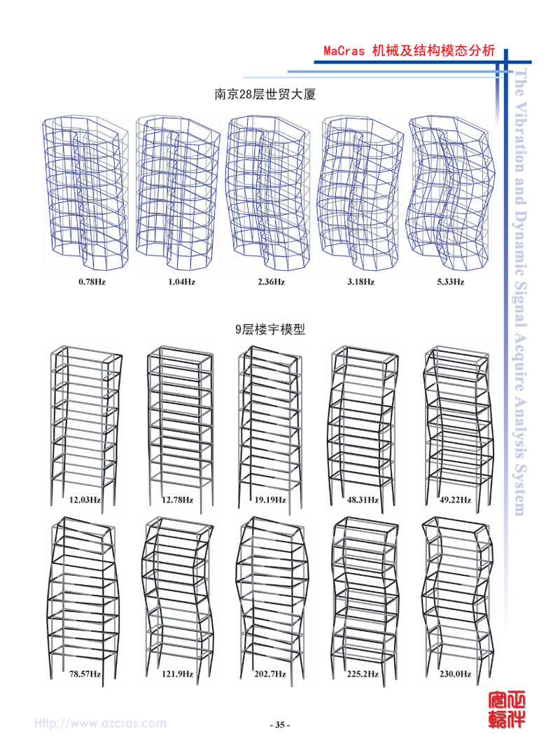 - 模态理论:实模态、复模态。采用CRAS独创的成功应用各种大量机器及结构25年的自动整体参数识别方法,毋须人工干预,操作简便,结果可靠。