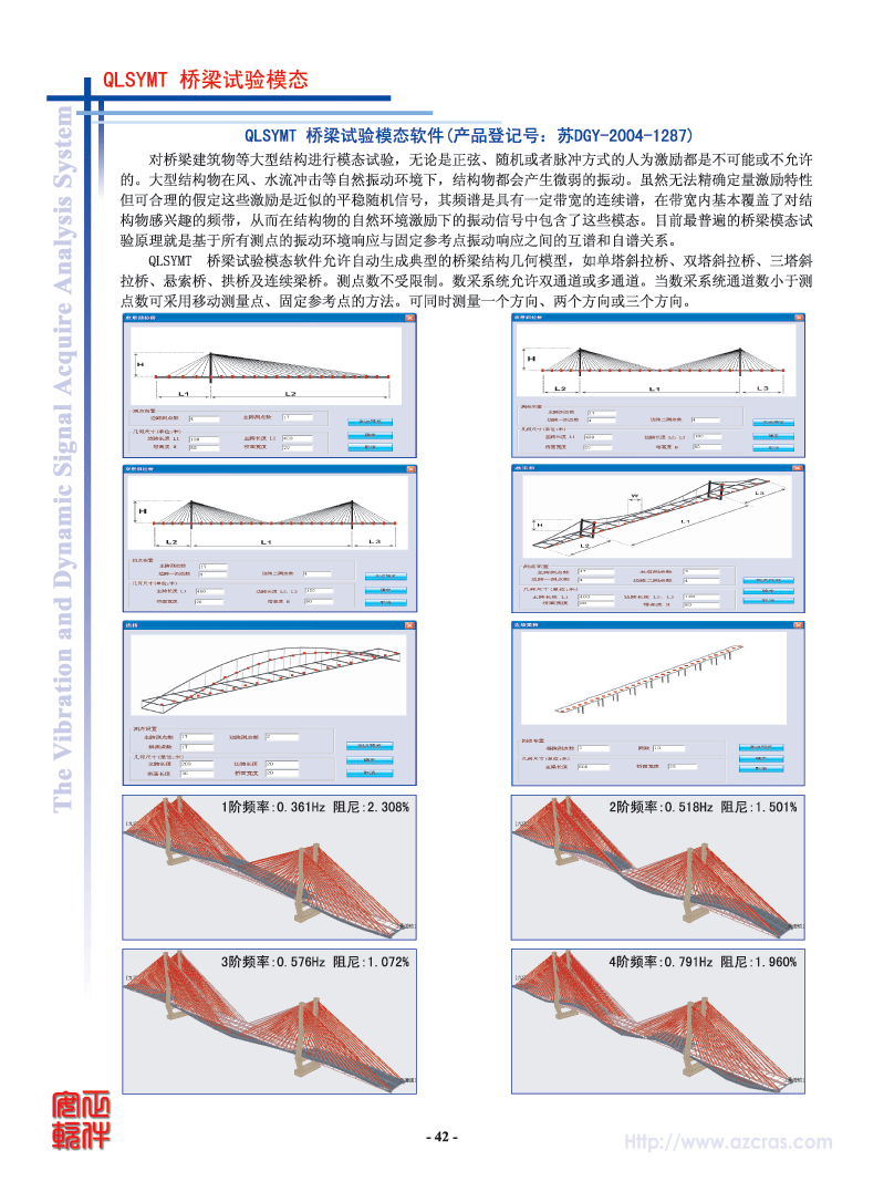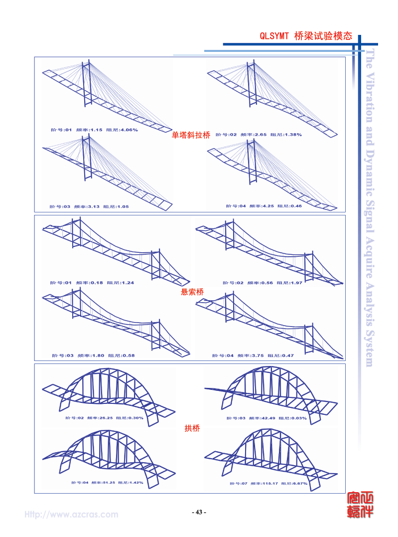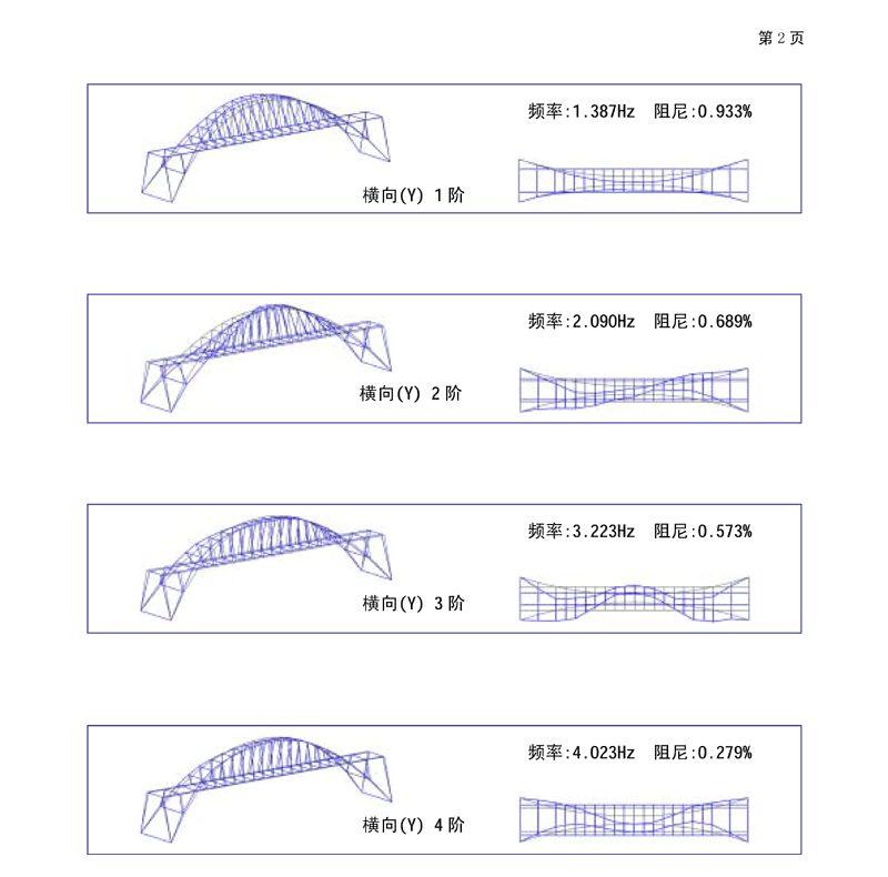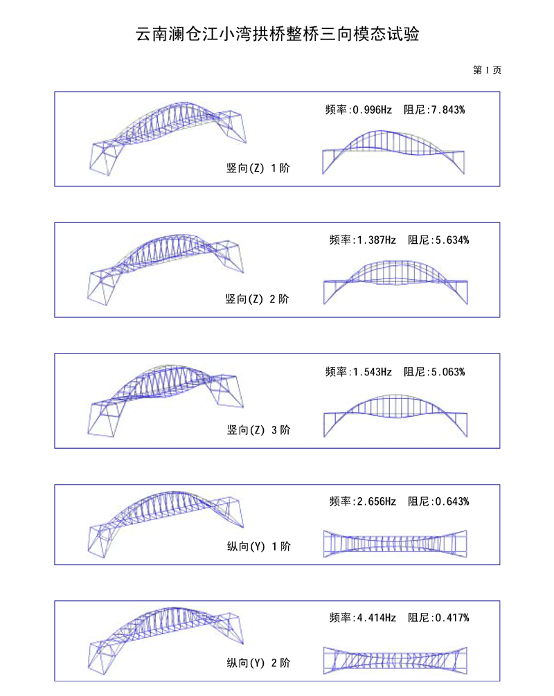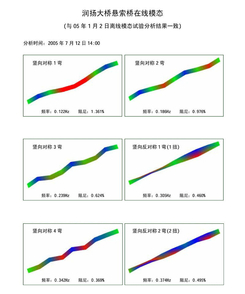 振型动画(将处理结果动态显示,并显示出桥梁模态频率、阻尼比) |
