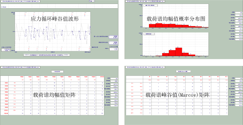 St_YL 应变雨流计数疲劳载荷谱用于采集动应变信号并进行频谱分析以及载荷谱分析,依次经过调整时间历程、提取峰谷值波形、去除无效循环、进行雨流计数从而获得峰谷值矩阵、均幅值矩阵、变程循环统计以及均幅值概率分布图。